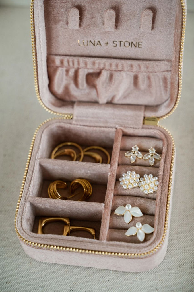 Purchase the set on its own, or add our luxury MRS Jewelry Case to store your jewels in at checkout. Perfect for your big day or honeymoon!