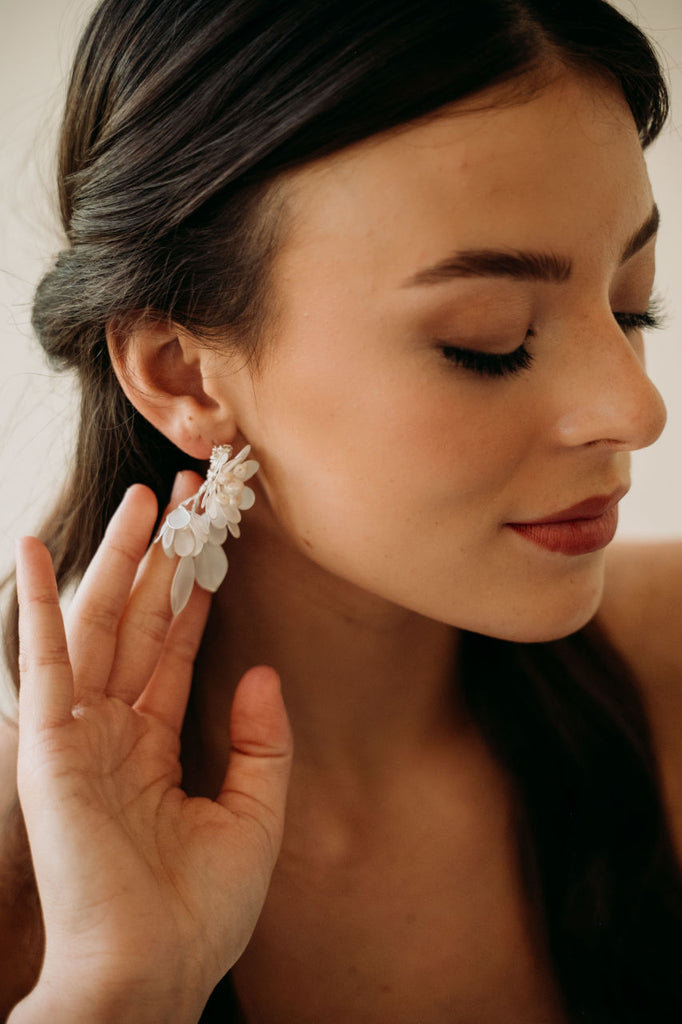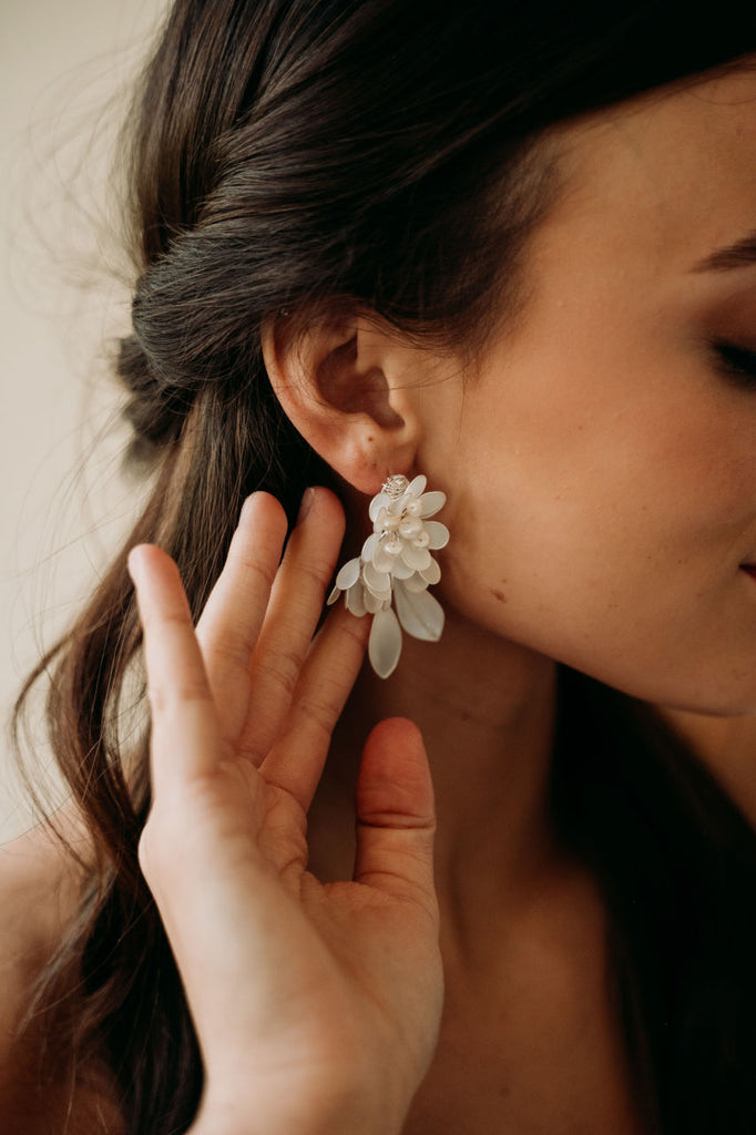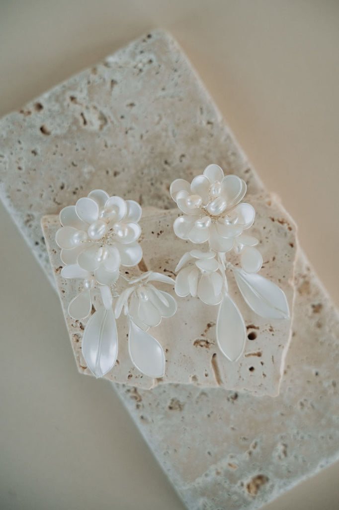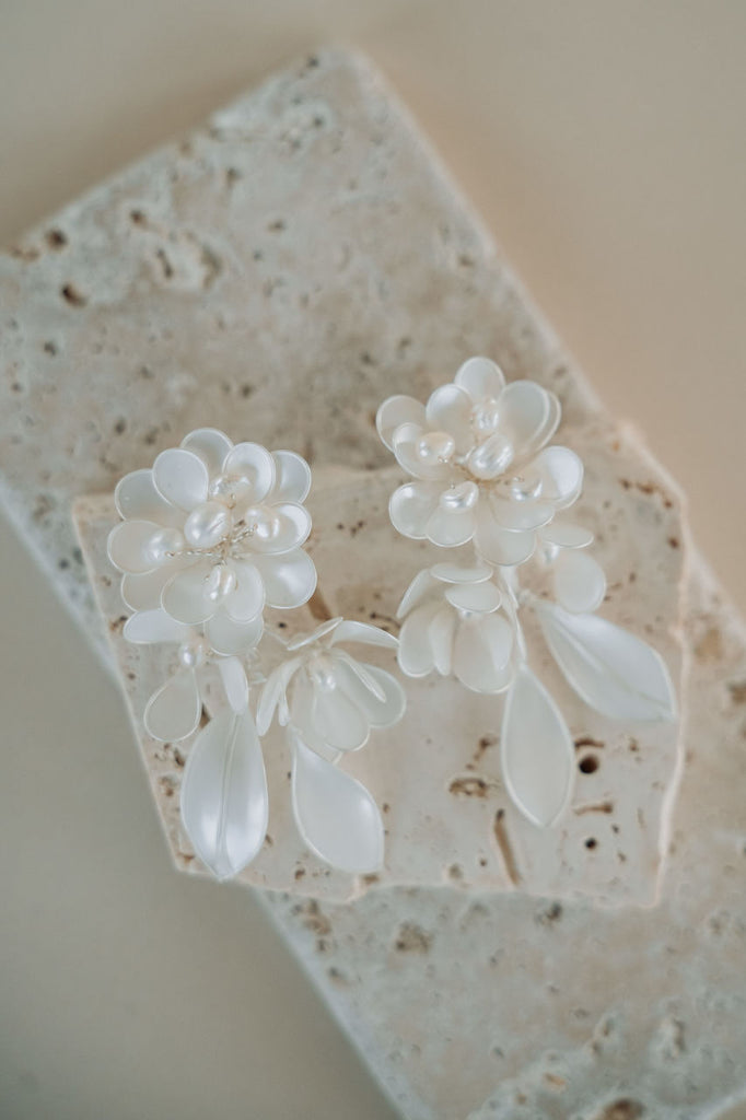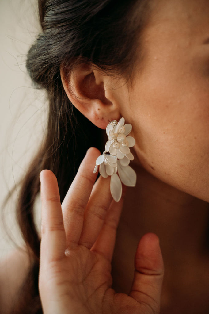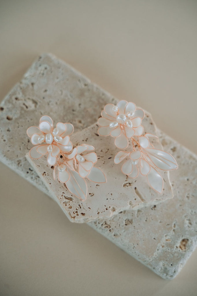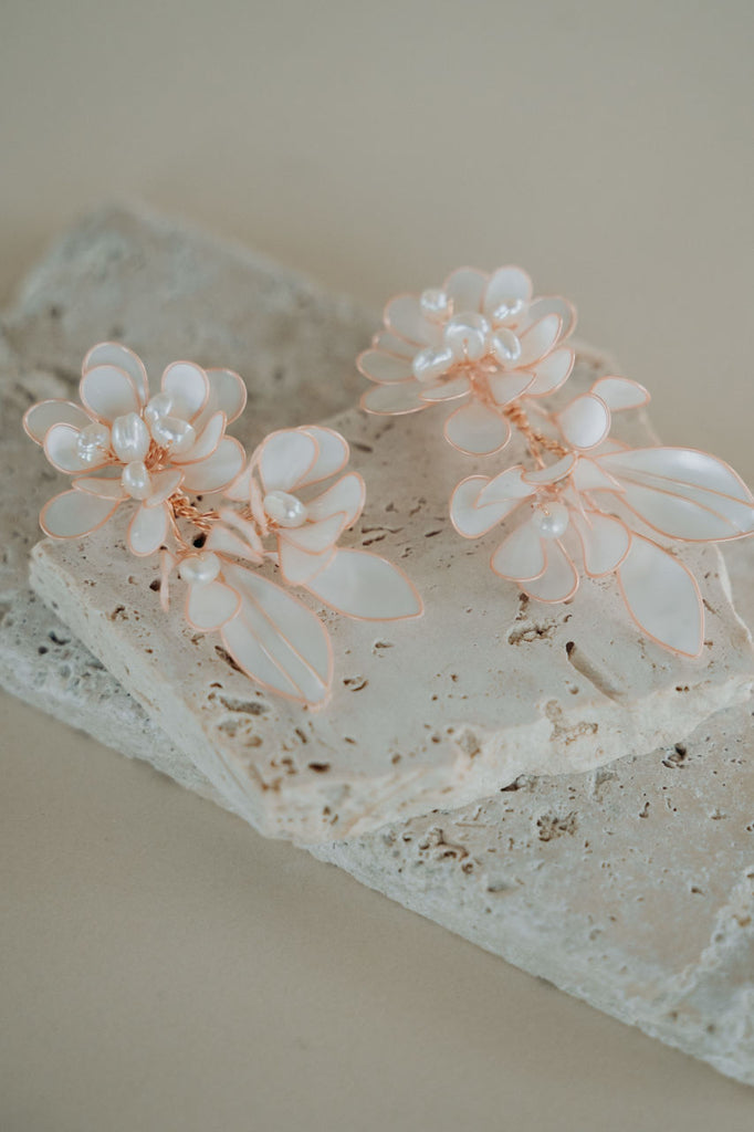 Introducing our Ipanema Earrings - the ultimate statement for any bride. Handcrafted with delicate resin flowers and leaves and accented by lustrous freshwater pearls. Elevate your look with these exquisite and sophisticated earrings.