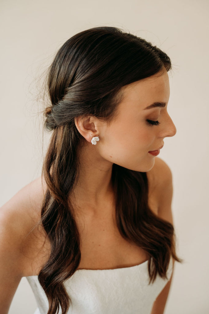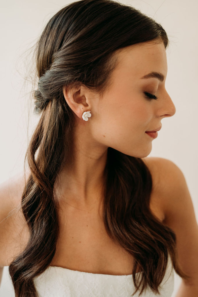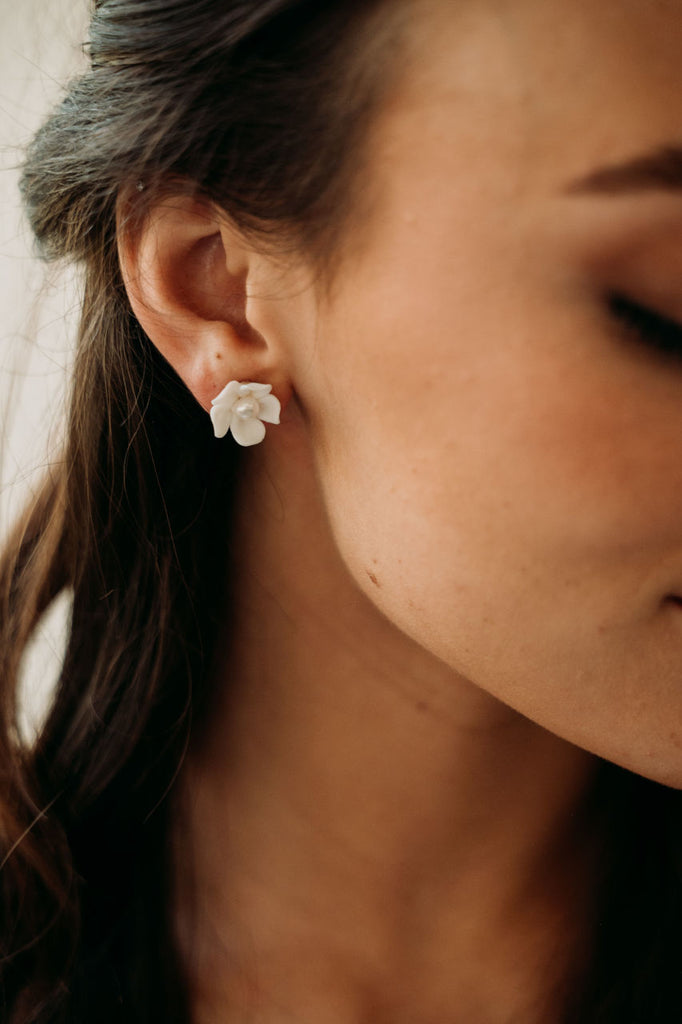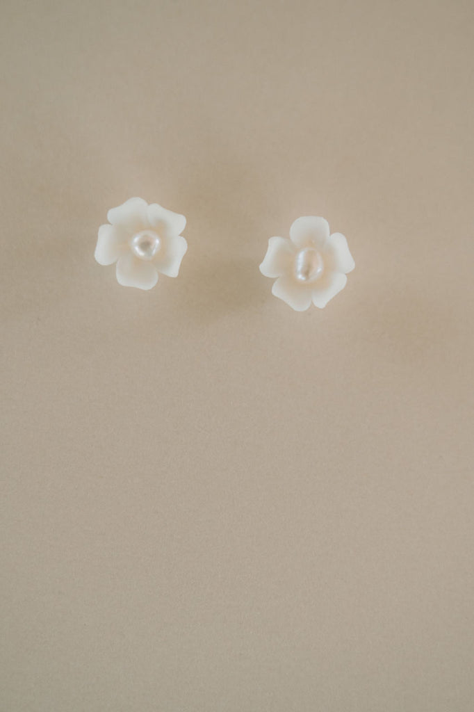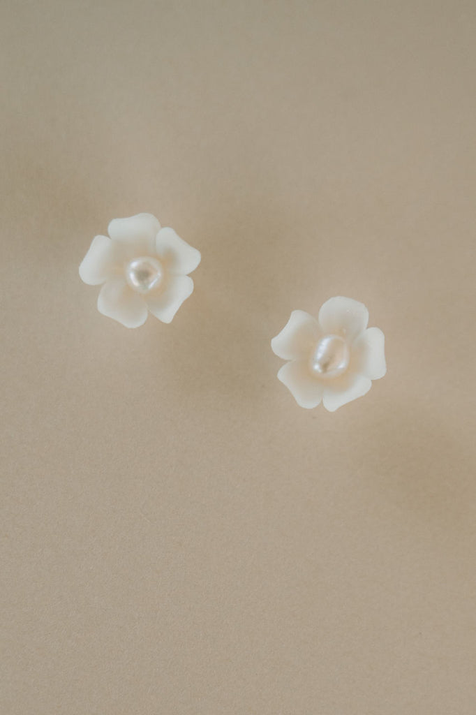Introducing our Thalia Earrings - a delicate blend of petite clay flowers and freshwater pearls. These dainty studs exude an air of sophistication, perfect for brides and bridesmaids alike. Elevate your look with these one-of-a-kind earrings that are sure to turn heads.