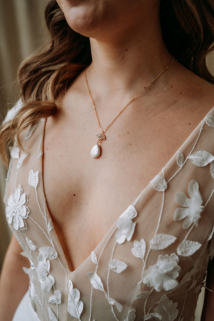 Our rhinestone crystals are set in single prong settings. Please be careful when pairing these pieces with lace, tulle and other embroidered fabrics as the prongs may snag.