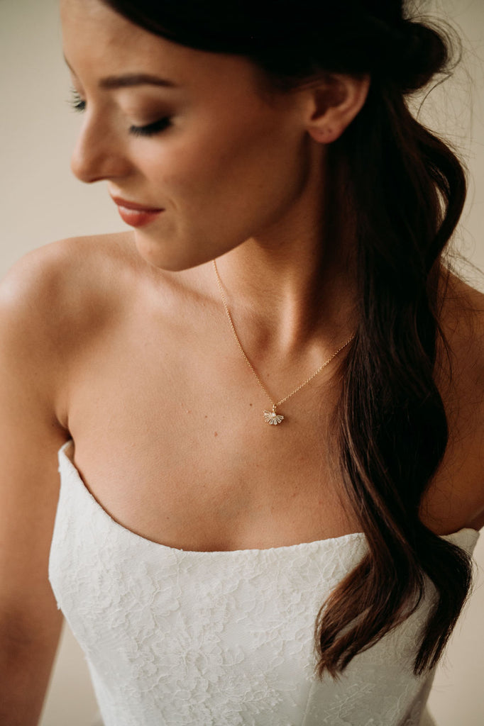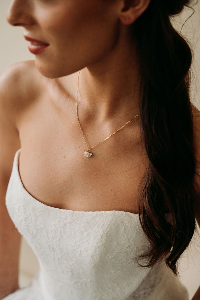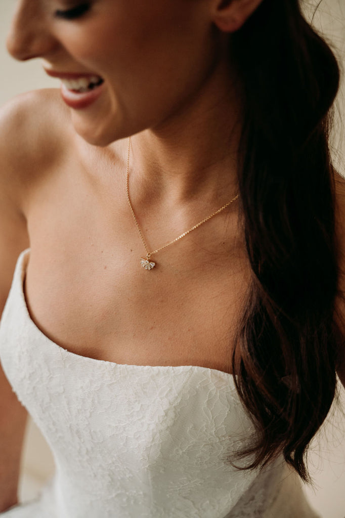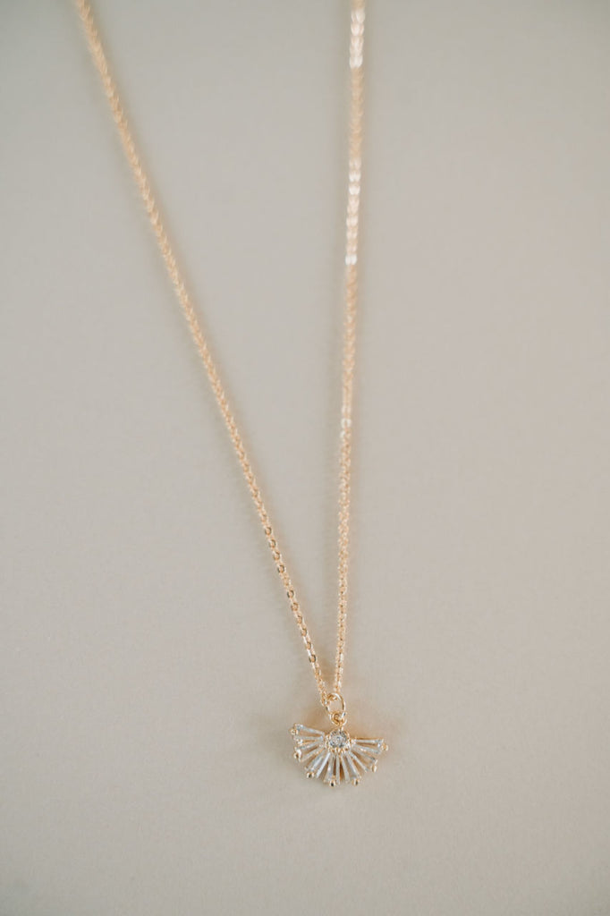 Indulge in luxury with our Bridget Necklace. This elegant gold filled chain necklace features an exquisite art deco crystal charm, perfect for any occasion. Whether you're a bride, bridesmaid or simply seeking a touch of glamour in your everyday look, this necklace will elevate your style with a sophisticated edge.
