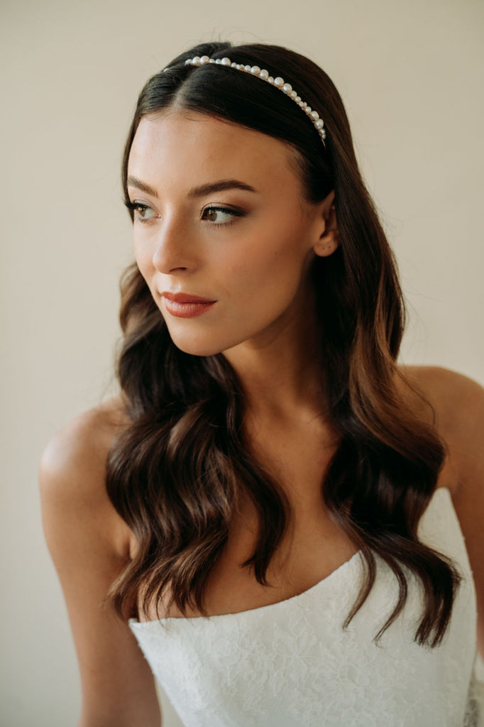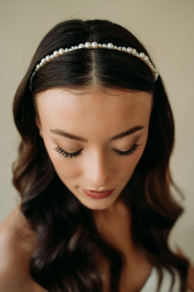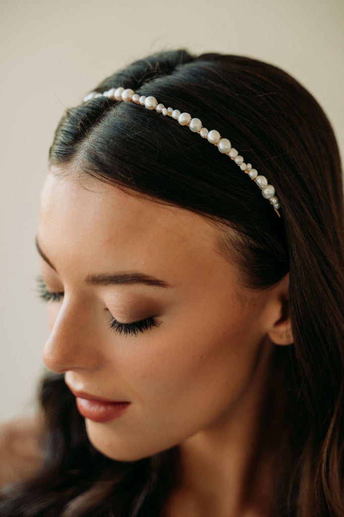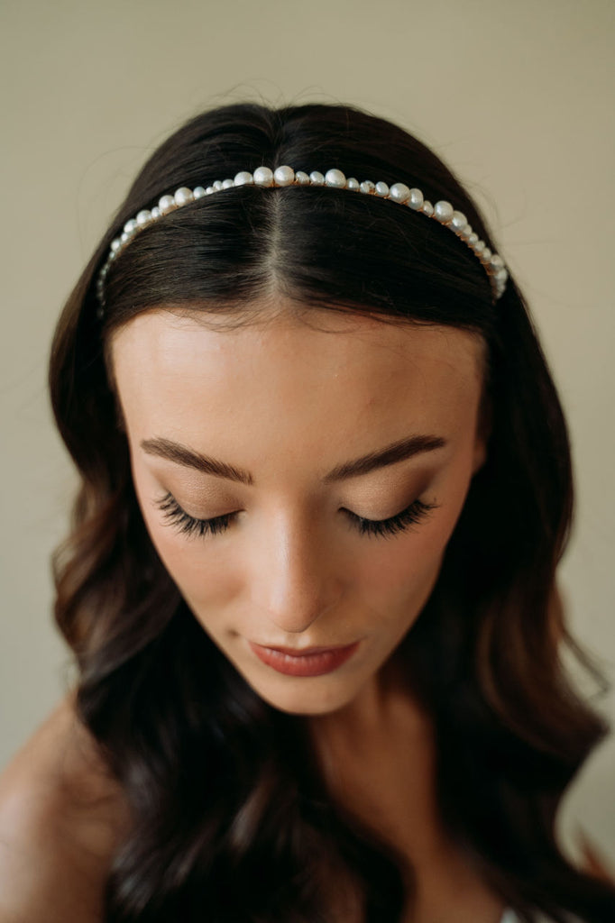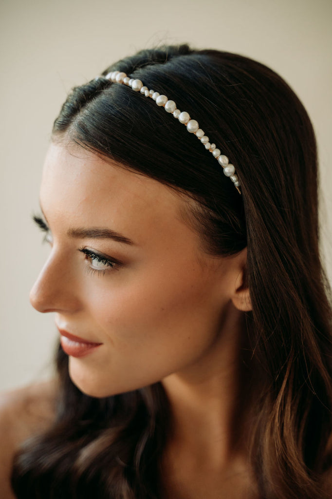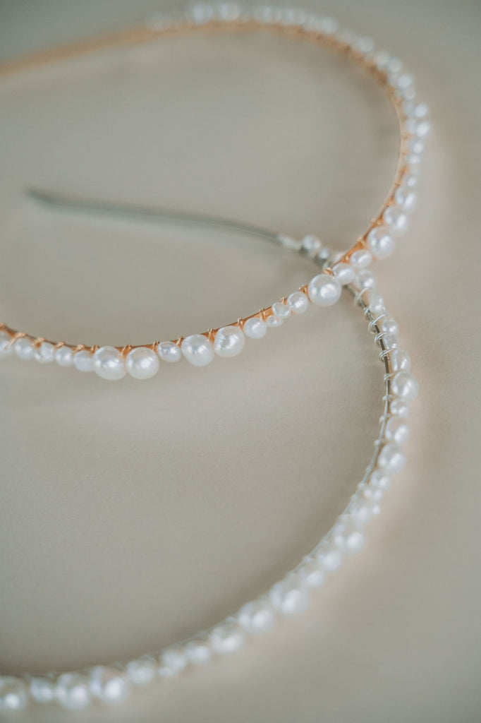 Be the ethereal bride of your dreams with the Evia Headband. This thin and lightweight wedding headband boasts hand-wired freshwater pearls, adding a simple and delicate touch of elegance to your look. Available in gold or silver, it's the perfect accessory for any bride.